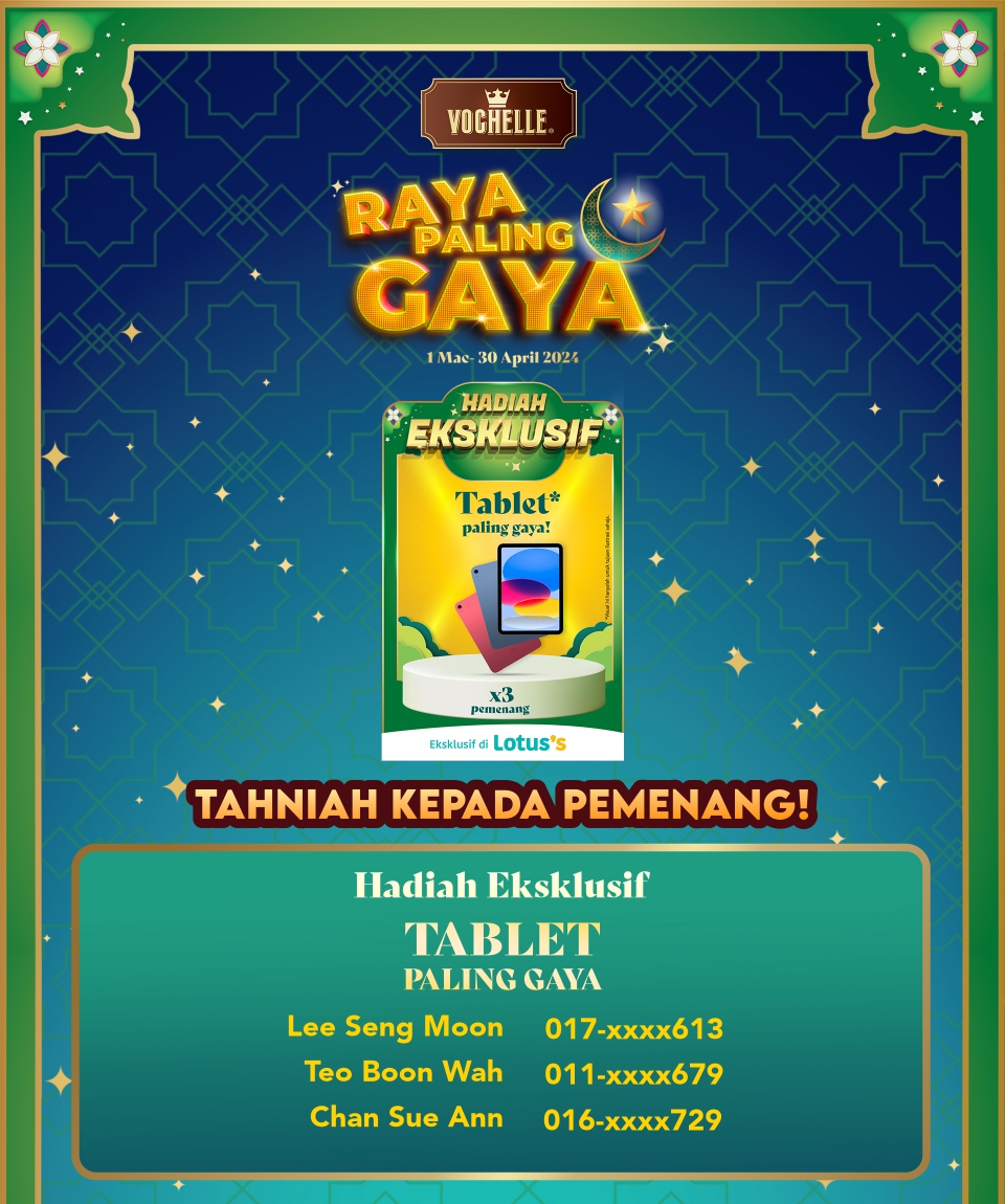 Tempoh PromosiPromosi ini akan bermula pada 01 Mac 2025 sehingga 30 April 2025. Penyertaan yang dihantar luar dari tarikh tidak akan diambil kira.